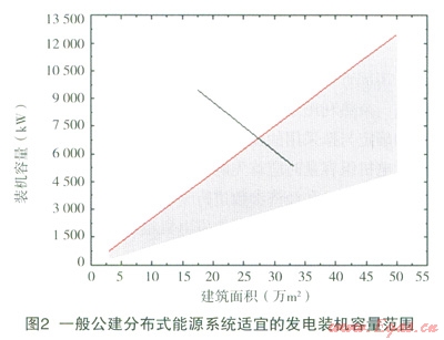 在實際項目實施中,如果沒有足夠資料對供能對象做詳細的負荷分析,可結(jié)合相關(guān)技術(shù)規(guī)定及已有項目運行經(jīng)驗簡單確定發(fā)電機組的容量。對于一般公共建筑,可根據(jù)其功能特點,按照設(shè)計電負荷的20%~50%選擇發(fā)電機組容量,全年負荷較為穩(wěn)定的建筑取上限,負荷波動較大的建筑取下限,如圖l所示。