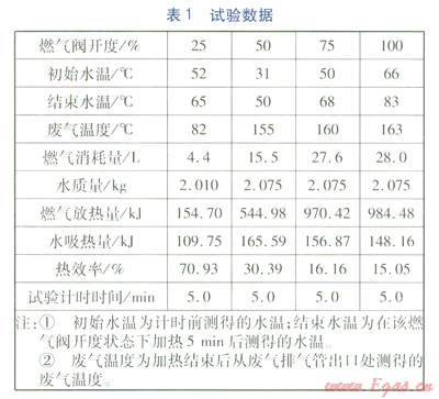 ②解釋了試驗過程中,當燃氣閥開度為25%時,燃氣在爐腔內(nèi)可以平穩(wěn)燃燒,而隨著燃氣閥開度增大,燃氣無法穩(wěn)定燃燒,火焰頻繁跳躍,發(fā)出“砰砰”聲。當燃氣閥開度提高到100%時,甚至出現(xiàn)打不著火的現(xiàn)象。試驗計算,熱效率隨著燃氣閥開度的增大而減小。