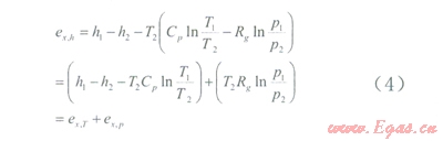 由(4)式可以看出,穩(wěn)流物質(zhì)的用可分解為兩部分,即在某一壓力下系統(tǒng)與環(huán)境之間因熱不平衡而具有的溫度用ex,T和在環(huán)境溫度時系統(tǒng)與環(huán)境之間因力不平衡而具有的壓力用ex,T。分析表明天然氣在高中壓降壓過程中可回收的最大壓力用為