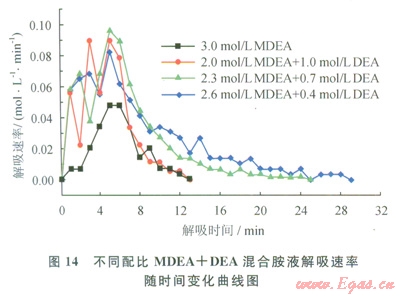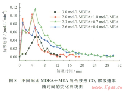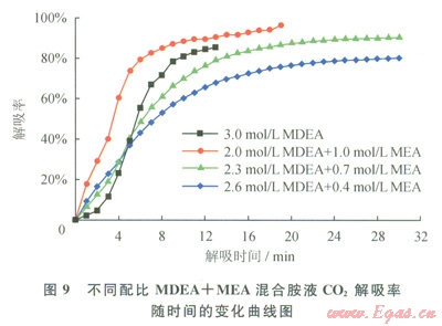 3.4 不同配比MDEA+DEA混合胺液對CO2的解吸性能