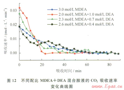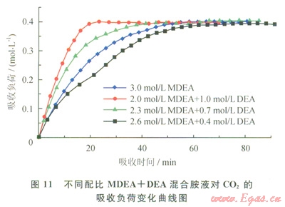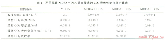 3.3 不同配比MDEA+DEA混合胺液對CO2的吸收性能