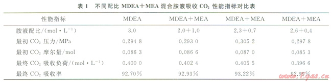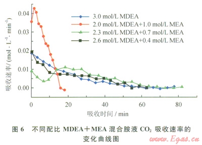 3.1 不同配比MDEA+MEA混合胺液對CO2的吸收性能