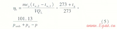 GB 6932—2001對熱水器熱效率的試驗(yàn)方法進(jìn)行了規(guī)定,并對測試儀器儀表的種類及規(guī)格做出了說明。熱效率ht的計(jì)算式為: