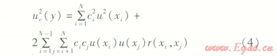 式中ci、cj——第i個(gè)j個(gè)輸入量的靈敏系數(shù)