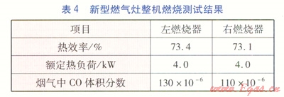 將以上改進(jìn)方法進(jìn)行綜合應(yīng)用,新型燃?xì)庠钫麢C(jī)燃燒測試結(jié)果(鍋支架高度為28mm)見表4。