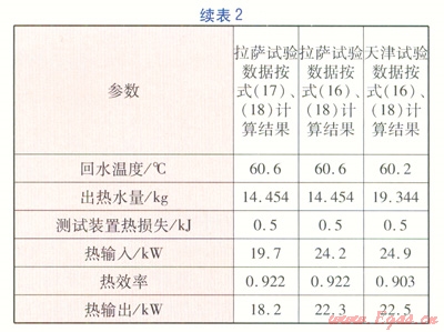 某品牌燃?xì)獠膳療崴疇t,型號為L1PB24,平原地區(qū)設(shè)計(jì)采暖額定熱輸入24kW、采暖額定熱輸出22kW。拉薩地區(qū)設(shè)計(jì)采暖額定熱輸入19.5kW、采暖額定熱輸出18kW。分別按式(16)及式(17)計(jì)算熱流量(熱輸入),按式(18)計(jì)算熱效率,熱輸出為熱效率乘以熱輸入。具體計(jì)算數(shù)據(jù)見表2。