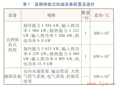 由以上分析可知,分布式系統(tǒng)的能效水平優(yōu)于直燃吸收式機組。但分布式系統(tǒng)增加r發(fā)電設(shè)備、離心式冷水機組等設(shè)備,使得分布式系統(tǒng)更為復(fù)雜,設(shè)備造價也相應(yīng)更高。下面以佛山地區(qū)某商業(yè)建筑為例,對兩種供能系統(tǒng)的經(jīng)濟性進行比較。