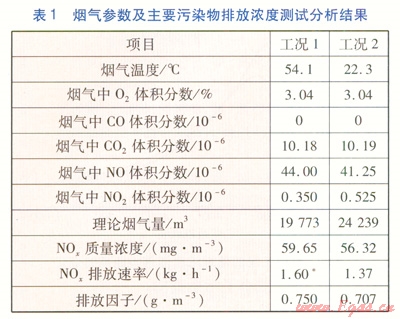 表1中,兩個工況下的煙氣采樣分析結果是以煙囪總出口處(C點)的數據進行對比分析。表1中*為折算值,是將工況1的NOx排放速率折算到與工況2供應相同的供熱量條件下的NOx排放速率。表1中排放因子定義為每1m3天然氣燃燒后排放的NOx的質量??梢钥闯?,同樣消耗1m3天然氣,工況2比工況1排放因子減少了5.73%。