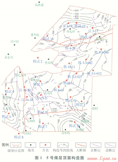 2)研究區(qū)5號煤層的排采出水量分析表明,近斷裂帶和構(gòu)造低幅度區(qū)排采出水量較大,遠(yuǎn)離斷裂帶和構(gòu)造低幅度區(qū),但頂?shù)装迳皫r含水層也會致使排采出水量增大??傮w上呈現(xiàn)南部和北部及中部韓3-2-025井區(qū)出水量較大,沿斷裂帶、構(gòu)造低幅度區(qū)及頂?shù)装迳皫r區(qū)出水量較大,是排采的不利區(qū)域。