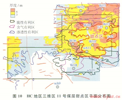 煤層氣甜點(diǎn)區(qū)的地震預(yù)測(cè)就是以與煤層氣富集關(guān)鍵要素相關(guān)聯(lián)的地震信息和地震屬性為主、多要素疊加、通過綜合評(píng)價(jià)來(lái)預(yù)測(cè)甜點(diǎn)區(qū)。不同區(qū)塊甜點(diǎn)區(qū)的含義是一致的,但綜合預(yù)測(cè)所應(yīng)用的地震信息和量化指標(biāo)則是相對(duì)的,甜點(diǎn)區(qū)的預(yù)測(cè)結(jié)果也是相對(duì)的,是同區(qū)中煤層氣富集條件和開發(fā)條件相對(duì)最好的區(qū)域。