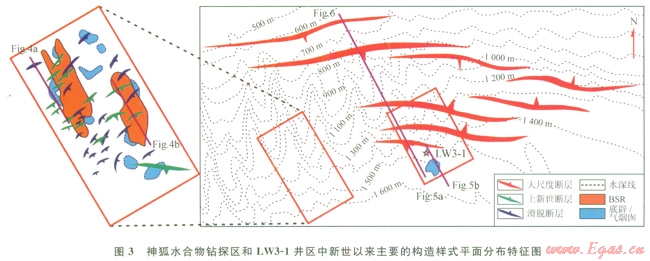 通過上述對構(gòu)造樣式的解剖和平面分布的描述,可以發(fā)現(xiàn)流體底辟和斷層是這兩個區(qū)域內(nèi)晚中新世以來主要的流體運移通道類型,但無論是氣煙囪還是斷層樣式,在上述的兩個區(qū)域中都存在著明顯的差異。