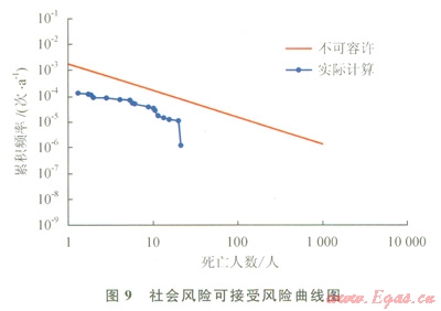 歐美等一些國家和石油天然氣企業(yè)已經(jīng)建立有自己的風(fēng)險(xiǎn)可接受標(biāo)準(zhǔn)。我國于2011年國家安全生產(chǎn)監(jiān)督管理總局頒布了《危險(xiǎn)化學(xué)品重大危險(xiǎn)源監(jiān)督管理暫行規(guī)定》,制定了危險(xiǎn)化學(xué)品重大危險(xiǎn)源的風(fēng)險(xiǎn)可接受標(biāo)準(zhǔn),除此以外沒有一個統(tǒng)一的或行業(yè)的風(fēng)險(xiǎn)可接受標(biāo)準(zhǔn)。因此,筆者所在公司自2009年就開展了高含硫氣田開發(fā)風(fēng)險(xiǎn)可接受標(biāo)準(zhǔn)的研究,并提出了公眾個人風(fēng)險(xiǎn)標(biāo)準(zhǔn)(0.8×10-4),員工個人風(fēng)險(xiǎn)(1.5×10-3)和社會風(fēng)險(xiǎn)[1.4×10-3(N=1),斜率取-1]基準(zhǔn)值以供參考。