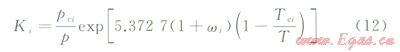 由各組分的臨界溫度(Tci)、臨界壓力(pci)以及地層溫度(T)和壓力(p),給出一個(gè)計(jì)算初始Ki值的經(jīng)驗(yàn)公式為: