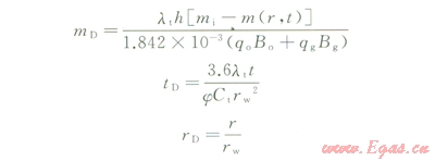 式中mD為無量綱擬壓力;tD為無量綱時(shí)間;rD為無量綱徑向距離。