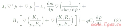 上述方程組中,如果不考慮毛細(xì)管力的影響(即po=pg),展開方程(1)和(2)得到: