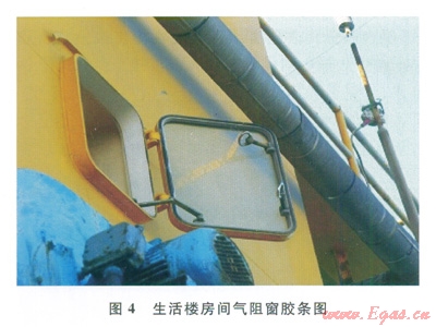 平臺生活樓房間布有400mm×560mm規(guī)格的氣阻型鋼質(zhì)窗,房間原有氣阻型窗玻璃膠條老化開裂,漏聲嚴(yán)重,其現(xiàn)場如圖4所示。對于此類狀況,可將房間舷窗用耐候隔聲膠條替換原有老化膠條。密封膠條的選用應(yīng)符合現(xiàn)場門窗的實(shí)際要求,具有阻燃、防火能力,如圖5所示。