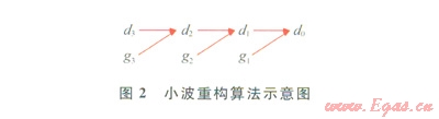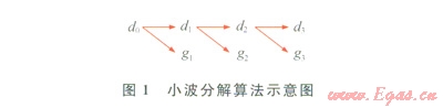 圖1中d0,為原始信號序列,d3為第3層低頻信號序列,g1、g2、g3分別為第1層高頻序列、第2層高頻序列、第3層高頻序列,圖1依據(jù)的公式為:
