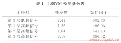 實(shí)驗(yàn)軟件采用LSSVMLAB軟件,根據(jù)LSSVM優(yōu)化回歸理論可知:高斯徑向基核函數(shù)核寬度(s)以及懲罰因子(C)對預(yù)測精度影響較大。s和C的求解方法一般為將巧和C分別采用單獨(dú)的優(yōu)化方法進(jìn)行優(yōu)化,筆者采用組合優(yōu)化方法進(jìn)行參數(shù)組合優(yōu)化,具體為差分進(jìn)化算法[14](DE),LSSVM預(yù)測模型的預(yù)測參數(shù)見表1。