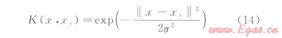 式中K(x,z:)為核函數(shù),本文選用高斯徑向基核函數(shù),其形式為: