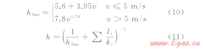 式中hfree為模板熱對流系數(shù),kJ/(m2·h·℃);v為風速,m/s,文中取v為5.6m/s;li為混凝土模板厚度,文中取li為0.018m;ki為模板導熱系數(shù),文中取ki為0.837kJ/(m·h·℃)。