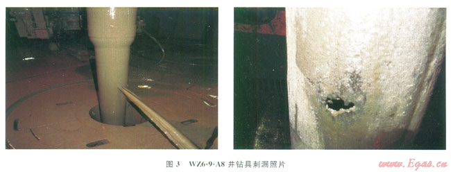 中海油田服務(wù)公司(簡(jiǎn)稱(chēng)中海油服)在海上鉆井進(jìn)行繞障作業(yè)井居多,設(shè)計(jì)淺造斜點(diǎn)的井很多,同平臺(tái)繞障作業(yè)的WZ6-9-A5和WZ6-9-A8[4]。兩口井鉆具刺漏、斷的失效鉆具情況,與茍西003-H1的情況非常相似(圖3)。WZ6-9-A8井初始2次鉆具刺漏情況為:
