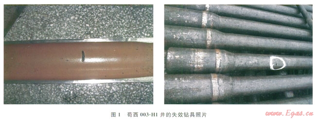 筆者從中國(guó)石油川慶鉆探工程公司(以下簡(jiǎn)稱(chēng)川慶鉆探)的2013年度鉆具疲勞失效分析會(huì)議注意到:茍西003-H1井[1]一共發(fā)生14次在鉆桿過(guò)渡帶消失區(qū)的刺穿失效,其中9次為連續(xù)發(fā)生的,更換不同廠家鉆具無(wú)效。而鄰近2口井采用同廠家的鉆具則沒(méi)有發(fā)生任何失效,不同的是該井造斜點(diǎn)僅為300m,但井斜不大且發(fā)生失效段狗腿度也不大。這種明顯的周期性鉆具累積疲勞破壞近年時(shí)有發(fā)生,主要與井身軌跡復(fù)雜有關(guān)[2],應(yīng)重點(diǎn)考慮淺井段造斜作業(yè)的影響。以此作為一種失效類(lèi)型進(jìn)行統(tǒng)計(jì),力求分析得出結(jié)論,既可以為施工作業(yè)進(jìn)一步預(yù)防和避免此類(lèi)失效提供思路,也可以為設(shè)計(jì)部門(mén)借鑒。
