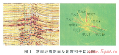 要確保儲(chǔ)量計(jì)算結(jié)果的精度,就必須從縱向上、平面上對(duì)儲(chǔ)量計(jì)算單元進(jìn)行細(xì)分。地震相十體技術(shù)能夠幫助更好地識(shí)別斷層,有助于合理、精細(xì)劃分儲(chǔ)量計(jì)算單元,該項(xiàng)技術(shù)利用地震信號(hào)相干值的變化來描述地層、巖性等的橫向非均勻性,有利于研究斷層、微斷裂的空間分布,地質(zhì)構(gòu)造異常及巖性的整體空間展布特征[9]。地震波同相軸發(fā)生錯(cuò)動(dòng)或波形橫向變化,都使相干數(shù)值發(fā)牛明顯變化,在相干切片上可直觀顯示斷層,從而確定平面上的儲(chǔ)量計(jì)算單元,并結(jié)合鉆井情況和地質(zhì)認(rèn)識(shí)確定各單元的儲(chǔ)量級(jí)別[10]。圖1是海上樂東15氣田常規(guī)地震剖面及地震相干切片圖,根據(jù)其對(duì)斷層的識(shí)別,共劃分了10個(gè)計(jì)算單元,探、評(píng)價(jià)井信息表明,各計(jì)算單元?dú)怏w組分差異大,相干體技術(shù)識(shí)別斷層后可以更加細(xì)分儲(chǔ)量計(jì)算單元,根據(jù)各計(jì)算單元的氣體組分、儲(chǔ)量的不同,從而在開發(fā)實(shí)施的過程中優(yōu)化開發(fā)井井位,優(yōu)先開發(fā)純烴含量高的計(jì)算單元,針對(duì)儲(chǔ)量大的區(qū)塊合理部署開發(fā)井?dāng)?shù),為高效、合理地利用天然氣資源奠定了基礎(chǔ)。