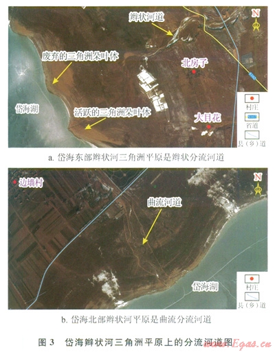 朵葉體大小與河流大小有關(guān),犬河流形成大朵葉體,小河流形成小朵葉體。這些朵葉體連成一片,形成“辮狀河三角洲群”,向湖泊“齊頭并進”,這應(yīng)是半濕潤氣候下山間湖盆三角洲的特點。