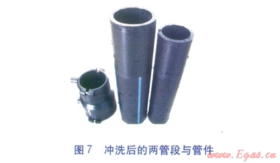 d.用水沖洗管材,用眼睛看不到泥土為止,其情況見圖7;