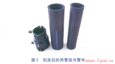 聚乙烯燃氣管道施工過程中可能出現如下狀況:管材刮皮后,管材刮皮的焊接面部分被泥土等臟物弄臟,然后電熔連接的工人對其進行擦拭等處理,再進行電熔連接的情況。