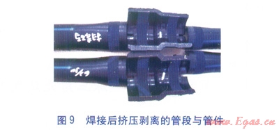 f.確認電熔焊機正常,掃條碼,電熔連接管件與管段,8 h后擠壓剝離,其結果見圖9。