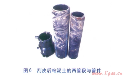 c.用濕泥土弄臟刮皮后的管材刮皮處,其情況見圖6: