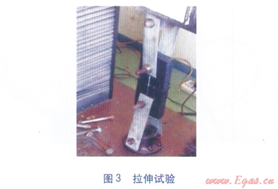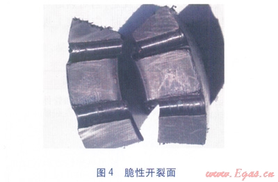 表2中,耐壓(靜液壓)強度試驗合格,即焊接處無破壞,無滲漏;拉伸性能試驗不合格,指焊接接頭破壞類型為脆性開裂(見圖4);拉伸性能試驗合格,則焊接接頭破壞類型為韌性開裂(見圖5)。