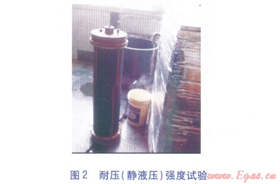 依據《規(guī)程》5.1.9條規(guī)定,每次試驗需選擇2個現(xiàn)場檢查出來有疑問的接頭,一個接頭做耐壓(靜液壓)強度試驗(見圖2),另一個接頭選取翻邊不合格段所對應的管段作取樣件(圖3中的黑色部分),做拉伸性能試驗(見圖3)。試驗的方法及參數遵照表1的相關規(guī)定。其中耐壓(靜液壓)強度試驗時,因管道材質為PE100,所以環(huán)應力s取5.4MPa。管內試驗壓力按下式計算: