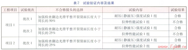 針對2項工程,總計做了3批次試驗,試驗情況見表2。