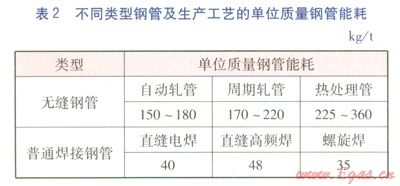 根據(jù)保溫管道工藝要求,DN 250mm及以下采用無縫鋼管(自動軋管),DN 250mm以上采用螺旋焊鋼管。能耗數(shù)據(jù)采用平均水平,DN 100、200mm鋼管的單位質(zhì)量能耗取163kg/t,DN 500mm鋼管的單位質(zhì)量能耗取35kg/t。
