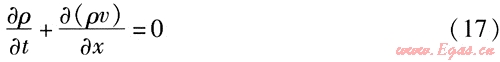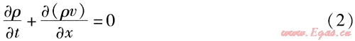 燃?xì)庠诠艿乐械牧鲃?dòng)是不穩(wěn)定流動(dòng),并且可看成一元流動(dòng),流體的壓力、密度、速度等參數(shù)是時(shí)間和管道長度的函數(shù)。以管道軸線方向?yàn)楦曜鴺?biāo),垂直于管道軸線為z坐標(biāo),可根據(jù)流體力學(xué)知識建立燃?xì)庠诠艿纼?nèi)流動(dòng)的3個(gè)方程,具體如下[1]: