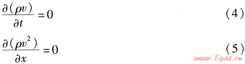 對于城市燃?xì)廨斉湎到y(tǒng),多數(shù)情況下,管道內(nèi)燃?xì)獾牧鲃?dòng)可以認(rèn)為是等溫流動(dòng),即燃?xì)鉁囟炔浑S時(shí)間和空間而變化,且等于管道周圍土壤的溫度,從而可以忽略能量方程(3);另外,動(dòng)量方程中的慣性項(xiàng)和對流項(xiàng)在大多數(shù)情況下可以忽略不計(jì),即: