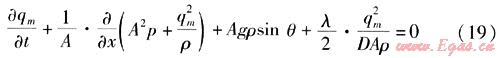 如果單位時(shí)間內(nèi)輸氣量的波動(dòng)較大,就需要考慮動(dòng)量方程中的慣性項(xiàng),上述式(7)、(8)就變成如下形式: