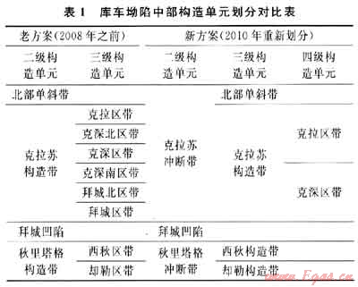 由于當(dāng)時(shí)勘探程度低,原構(gòu)造單元?jiǎng)澐址桨笇刂茀^(qū)帶劃分的其他因素考慮甚少。近年來,隨著油氣勘探的深入,尤其是構(gòu)造建模研究、區(qū)域構(gòu)造演化研究、油氣成藏研究取得重要進(jìn)展,構(gòu)造單元?jiǎng)澐址桨敢舶l(fā)生了改變。因此,筆者根據(jù)目前的研究成果對庫車坳陷中部構(gòu)造單元重新進(jìn)行劃分。