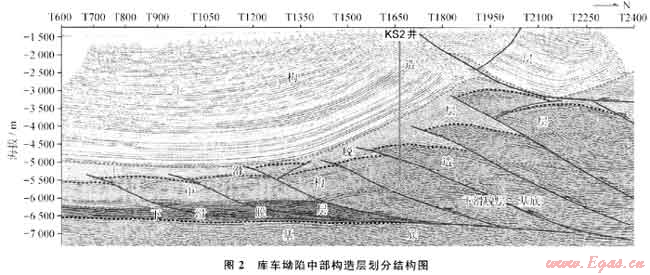克拉區(qū)帶已發(fā)現(xiàn)KL2氣田、KL3氣藏,主要是由完整背斜控制的氣藏,氣藏埋藏淺,目前認(rèn)為該帶只有較厚的膏鹽巖蓋層與鹽下完整背斜才具備形成氣藏的條件,由于靠近山前,差異推覆作用形成的走滑斷裂可能對油氣藏也具有一定的破壞作用。