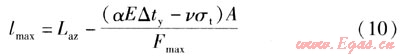由于循環(huán)溫差小于屈服溫差,因此管道永遠(yuǎn)處于彈性狀態(tài),但其安裝長度受到局部穩(wěn)定的限制,管道的最大允許安裝長度計(jì)算公式同式(8)。