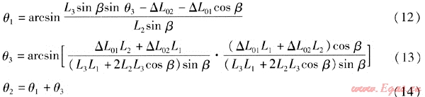 式中θ3——鉸鏈波紋管補(bǔ)償器S3對(duì)應(yīng)的角位移,(°)