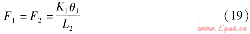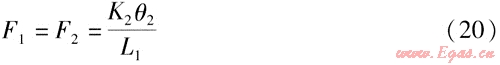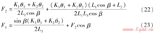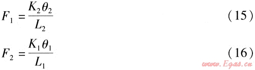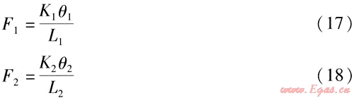 式中K2、K1——鉸鏈波紋管補(bǔ)償器S2、S1對(duì)應(yīng)的角向剛度,N·m/(°)