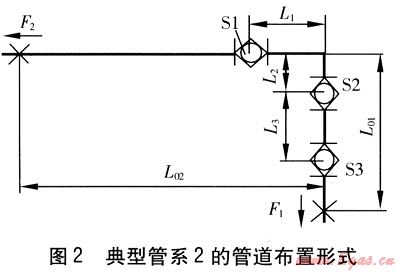 典型管系2的管道布置形式見(jiàn)圖2。