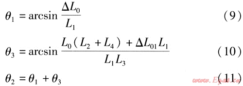 式中θ1、θ2——鉸鏈波紋管補(bǔ)償器S1、S2對(duì)應(yīng)的角位移,(°)