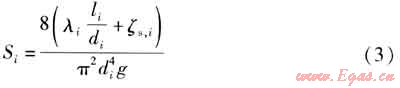 式(5)是體積流量與供水壓力的計算關(guān)系式,求解的關(guān)鍵是確定各管段的管長、管道內(nèi)直徑、沿程阻力系數(shù)和局部阻力系數(shù)之和。