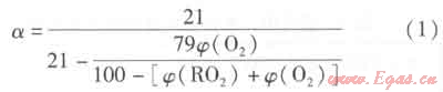 通過(guò)式(1)可計(jì)算出該臺(tái)鍋爐運(yùn)行時(shí)的過(guò)剩空氣系數(shù)。