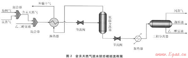 某含汞氣田天然氣處理廠脫水脫烴裝置的處理規(guī)模為500×104m3/d,原料氣溫度為48.5℃,壓力為12.1MPa,汞濃度范圍為50~150μg/m3(檢測(cè)結(jié)果),原料氣其他組分組成(摩爾分?jǐn)?shù))為:氮?dú)?.598%,二氧化碳0.721%,甲烷97.826%,乙烷0.550%,丙烷0.044%,異丁烷0.007%,正丁烷0.012%,異戊烷0.005%,正戊烷0.005%,己烷0.008%,苯0.050%,庚烷0.008%,甲苯0.007%,辛烷0.020%,水0.139%。所用乙二醇貧液流量為1686.29kg/h,濃外輸干氣度為85%(質(zhì)量分?jǐn)?shù))。要求外輸干氣的水露點(diǎn)不高于-10℃,烴露點(diǎn)不高于-5℃(輸氣管道末端操作壓力為1.6MPa時(shí))。模擬過程不計(jì)熱損失。