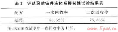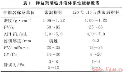 針對上述技術難點.以室內研究為技術支撐,主要考慮抑制性、潤滑性能及流變性能,分別研制出了鉀鹽聚磺鉆井液體系和強抑制低傷害暫堵鉆井液體系。